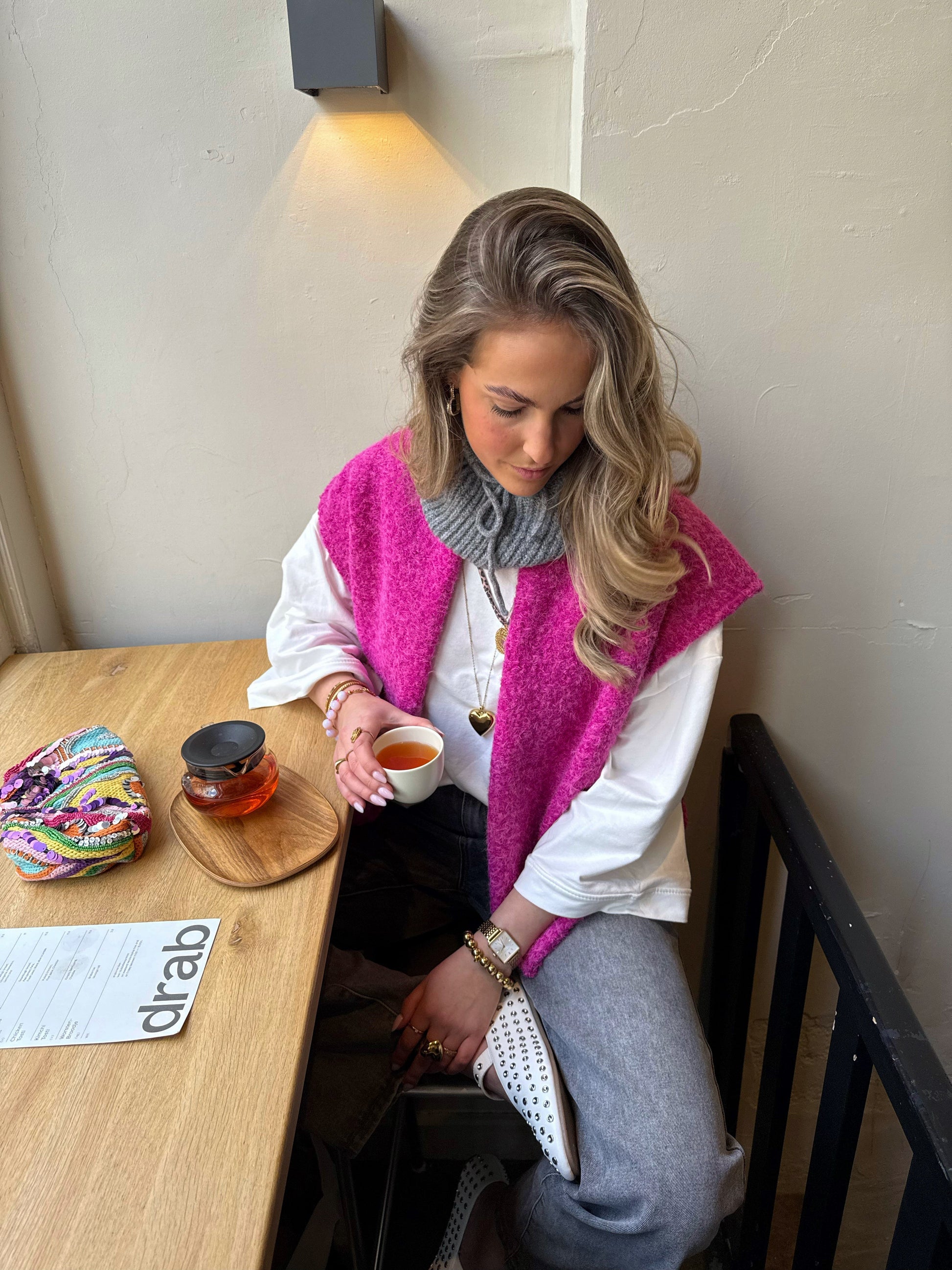 The top is made from high-quality fabric known for its softness, warmth and elegance.